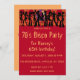 Este convite de aniversário da discoteca editável dos anos 70 mostra silhuetas de dançarinos contra um fundo laranja e vermelho. Os detalhes do evento estão abaixo. No verso há um campo para informações adicionais. Este campo e o texto na parte frontal são todos editáveis, então vá em frente e altere os detalhes, assim como a cor, o tamanho e o estilo da fonte. As cores de fundo em ambos os lados também podem ser alteradas. Este convite versátil ao estilo disco dos anos 70 pode ser usado para aniversários, aposentadorias, aniversários etc. Aproveite seu novo Convite de aniversário 70s editável Disco!