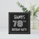 A frente desta design de placa de convite de aniversário de 78 e na moda apresenta um nome editável, um estilo deco de rico inspirado no número "78", a mensagem "FESTA DE ANIVERSÁRIO!" e um padrão de borda composto por linhas. Por padrão, a frente também tem um fundo de cor preta, mas pode ser personalizado para uma cor diferente, se desejado. A parte traseira apresenta detalhes personalizados sobre o evento, como data, hora, local/local e quaisquer outras informações que possam ser importantes. Convites elegantes, luxuosos e personalizáveis como estes podem ser usados para convidar convidados/participantes para uma festa de aniversário que está sendo realizada para celebrar o 78º aniversário de alguém. [~Z0000615]