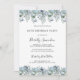 Pêonias azuis empoeiradas e flores silvestres formam uma bonito fronteira superior e inferior neste convite de aniversário