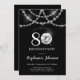 Ouros Elegantes Convite de aniversário 80 Negro. Prepare-se para brilhar com este maravilhoso convite de aniversário de marco que é tudo sobre elegância moderna e glamouroso bling! A design apresenta imagens brilhantes de diamante que se deslumbram contra um cenário elegante e sofisticado, criando uma aura de celebração luxuosa. Com uma tipografia elegante que equilibra lindamente a escrita chic e as fontes modernas, cada detalhe do convite expele o brilho sofisticado. Este convite é perfeito para um aniversário de um marco, reunindo o fascínio das faíscas, a sofisticação dos diamantes e o entusiasmo de um evento verdadeiramente glamouroso. Vamos comemora em estilo!