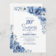 Este convite de 80 de surpresa floral azul foi feito para estabelecer o palco para uma celebração verdadeiramente memorável. Os modelos de texto personalizáveis permitem adicionar o nome do convidado honrado, os detalhes da festa secreta e o local com facilidade. O seu amado estará presente durante uma noite de risos e lembranças queridas. Você pode escolher entre vários tipos de papel e estilos de canto para criar convites exclusivos que se adequem ao seu gosto. Além disso, você também tem a opção de baixar o convite se preferir uma versão digital.