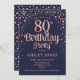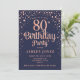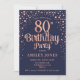 Convite de aniversário 80. Design elegante em azul marinho e ouro rosa brilhante. Possui fonte de script na moda e confetti. Envie-me uma mensagem se precisar de idade personalizada.