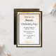 Um cartão de convite para bolsa mensageifesta de aniversario elegante de aniversário para homens e mulheres. Modelos para suas informações. Molduras de ouro pretas e falsas e chuva de confete de ouro. Espanto branco elegante, letras negras. Traseiro: fundo preto e confete de ouro.