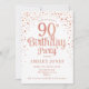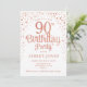 Convite de aniversário 90. Design elegante em ouro branco, cor-de-rosa e brilhante rosa. Possui fonte de script na moda e confetti. Envie-me uma mensagem se precisar de idade personalizada.