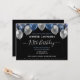 Balões de luz azul e prata falsos legantes na borda superior. Todo o texto é ajustável e fácil de mudar para as necessidades do seu próprio partido. Excelente elegante do modelo guarde a data festa de aniversário design. a qualquer ano, a idade pode ser alterada. Elegante tipografia moderna da na moda