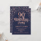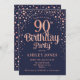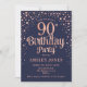 Convite de aniversário 90. Design elegante em azul marinho e ouro rosa brilhante. Possui fonte de script na moda e confetti. Envie-me uma mensagem se precisar de idade personalizada.