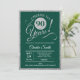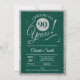 90 convite de aniversário para homens ou mulheres. Cartão de convite elegante em verde com folha de prata brilhante. Apresenta a fonte do script de tipografia. Saúde para 90 anos! Pode ser personalizado em qualquer ano. Perfeito para uma celebração de um dia adulto.