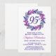Elegante Pink e Purple Wreath 95th Birthday Invitation Personalize este elegante convite de aniversário rosa e roxo de coroa com o nome da pessoa que celebra um dia muito especial em sua vida. Um aniversário de 95 anos é um marco especial para celebrar. Marque a ocasião criando uma festa e enviando convites para todas as pessoas especiais em sua vida. Compre nossa loja por presentes que você pode personalizar com este mesmo design elegante em presentes de aniversário e decorações de festas de aniversário.