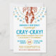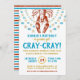 Comemore um aniversário divertido na praia com estes convites para os lagostins brilhantes. Feitos em tons de vermelho, azul e ouro em branco, estes convites náuticos mostram um lagosta e conchas com as palavras humorísticas, "O Aniversário de "[Seu Nome] vai Comer Cray-Cray!" O verso inclui um padrão listrado. Estas são perfeitas para qualquer lago, partido oceânico ou de pesca, e também são perfeitas para um fervor de lagosta! Use as modelos fáceis para personalizar os campos de texto ou personalizar ainda mais para fazer alterações mais detalhadas. Jogue uma festa de aniversário de praia divertida com estes convites atraentes.