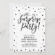Celebre seu dia especial com este convite simples de festa de aniversário surpresa. Este design de convite preto e branco apresenta tipografia moderna "shhh... é uma Festa Surpresa!" com fundo de confetes. Você pode personalizar o texto para qualquer idade (30º, 40º, 50º, 60º, 70º... etc) ou evento. Mais convites de festa e suprimentos de festa correspondentes estão disponíveis na minha loja BaraBomDesign.