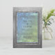 Uma pedra cinza metálica brilhante e molduras prateadas cintilantes rodeiam uma tela opalescente azul esverdeada aquática para tipografia clássica, tornando este um convite de festa clássico e opulento.