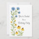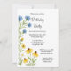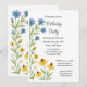 Este convite de aniversário apresenta ilustrações encantadoras em aquarela de botões de azul e coneflowers amarelos vibrantes, lindamente acentuados por folhas verdes exuberantes. O design floral colorido é perfeito para criar uma atmosfera quente e convidativa em qualquer celebração de aniversário de verão relaxado.