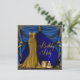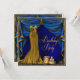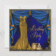 Convite de aniversário elegante em azul real e dourado no estilo Art Deco. Este convite de aniversário feminino apresenta um lindo vestido de gala dourado e cortinas com borlas em azul real e dourado. Você pode personalizar facilmente o convite de aniversário em azul real e dourado simplesmente escolhendo o botão "Personalize!" para começar a adicionar os detalhes do seu evento, estilo de fonte, tamanho e cor da fonte e texto. Por favor, note que todos os adesivos, cartões e desenhos de convites que você encontrará na Zazzle são gráficos impressos sem joias, laços, relevos, rebaixos ou peças ou partes adicionadas.