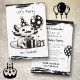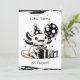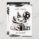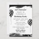 Convites de festas de aniversários do Axolotl preto e branco. Um axolô fofo num chapéu de aniversário com balões. Muitas bolinhas brancas e pretas. Sexo-neural! Bonita para meninos ou meninas!