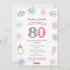 Um divertido 80 Azul e Branco Azul, design de convite para um biscoito ao ar livre ou festa de piquenique