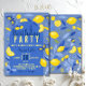 Convite Festa de aniversário Azul e Limão Moderna Colorida