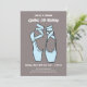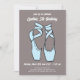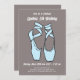 Este clássico, simples, mas elegante design, apresenta pantufas de balé de dedos pontiagudos em azul de bebê macio com um plano de fundo elogiado. Um convite bonito para sua bailarina favorita. Todo texto pode ser personalizado de acordo com o seu gosto.