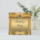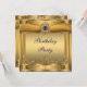 Convite de festa de aniversário azul real e dourado com redemoinhos dourados. Este convite de festa de aniversário azul real e dourado é facilmente personalizado para o seu evento, basta adicionar os detalhes do evento, estilo de fonte, tamanho e cor da fonte e texto. Por favor, note que todos os adesivos, cartões e desenhos de convite que você encontrará no Zazzle são gráficos impressos sem joias, laços, relevos, rebaixados ou peças adicionais.