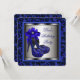 Convite de festa de aniversário de sapato salto alto estampado com leopardo prateado e azul real. Este convite de festa de aniversário azul real e prateado é facilmente personalizado para o seu evento, basta adicionar os detalhes do evento, estilo de fonte, tamanho e cor da fonte e a redação. Por favor, observe que todos os adesivos, cartões e desenhos de convite que você encontrará na Zazzle são gráficos impressos sem joias, laços, relevos, rebaixados ou peças ou partes adicionadas.