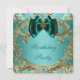 Convite de aniversário com belos redemoinhos dourados em azul-teal, verde-jade e dourado. Este convite de aniversário elegante em azul-teal e dourado é facilmente personalizado para o seu evento, bastando adicionar os detalhes do evento, o estilo, tamanho e cor da fonte e a redação. Por favor, observe que todos os adesivos, cartões e desenhos de convite que você encontrará na Zazzle são gráficos impressos sem joias, laços, relevos, rebaixos ou peças ou partes adicionais.