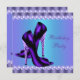 Convite de festa de aniversário com sapato de salto alto roxo elegante de leopardo. Este convite de festa de aniversário com pérolas azul-teal e lavanda roxo e sapato de salto alto roxo funciona bem para uma festa de aniversário de sweet sixteen, convite de Quinceanera roxo, convite de aniversário de mulher roxo para qualquer idade e é facilmente personalizado para o seu evento simplesmente escolhendo o botão "Personalize!" para começar a adicionar os detalhes do seu evento, estilo de fonte, tamanho e cor da fonte e texto. Por favor, note que todos os desenhos de convites que você encontrará no Zazzle são gráficos impressos sem jóias, laços, partes ou peças reais, em relevo ou adicionadas.