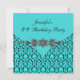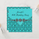 Convite de festa de aniversário feminino azul turquesa preto damask para qualquer número.