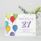Convite para balões de aniversário. com um código QR digitalizável e ícone do Facebook para o seu convidado responder e dar saída da sua página de eventos através do Web site online, basta adicionar o seu endereço Web URL. Para crianças, adultos, ou o aniversário de qualquer ano. Contornos modernos e balões podem ser usados para convites de festas surpreendentes ou qualquer festa. Um começo divertido para a sua comemoração da festa de aniversário. Esta design apresenta uma festa de aniversário simples, bonita e colorida, confete de balão com texto brilhante, trendy na moda calliógrafo, estilo design, tipografia caprichosa, celebração festiva, festa, vermelho azul verde-amarelo, convite minimalista para o aniversário, convites para festas de confetti para crianças adultas de qualquer idade, convite bonitinho e simplista e adorável trabalho de arte por laura lacina