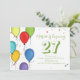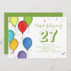 Convite para balões de aniversário. com um código QR digitalizável e ícone do Facebook para o seu convidado responder e dar saída da sua página de eventos através do Web site online, basta adicionar o seu endereço Web URL. Para crianças, adultos, ou o aniversário de qualquer ano. Contornos modernos e balões podem ser usados para convites de festas surpreendentes ou qualquer festa. Um começo divertido para a sua comemoração da festa de aniversário. Esta design apresenta uma festa de aniversário simples, bonita e colorida, confete de balão com texto brilhante, trendy na moda calliógrafo, estilo design, tipografia caprichosa, celebração festiva, festa, vermelho azul verde-amarelo, convite minimalista para o aniversário, convites para festas de confetti para crianças adultas de qualquer idade, convite bonitinho e simplista e adorável trabalho de arte por laura lacina