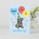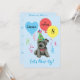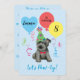 Vocês são convidados para uma pata de aniversário com este fofo escocês de Terrier que veste chapéu, rodeado por balões e galerias coloridos. O texto pode ser facilmente personalizado. Fornecimentos correspondentes disponíveis.