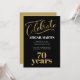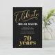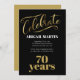 Convite de aniversário preto elegante, ouro e 70 branco para mulheres.