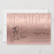 Convite de aniversário elegante com "70 & Fabuloso" escrito em um script de caligrafia na moda, fundo rosa dourado e brilho rosa dourado. Você pode personalizar com o nome dela e os detalhes da festa.