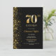 Este 70 preto moderno com brilho dourado apresenta uma área de texto personalizável que permite que você inclua sem esforço todos os detalhes necessários para sua celebração especial de aniversário, incluindo a data, hora, local e informações de RSVP. Vários tipos de papel e estilos de canto estão disponíveis para seus convites exclusivos, juntamente com a opção de download.