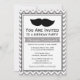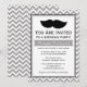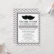 Um bigode e um convite de aniversário com padrão de chevron em cinzas, preto e branco para hipsteres que enxergam o coração!