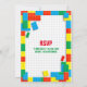 Incomode seus convidados com este convite de aniversário colorido com pequenos blocos de construção bonitos e uma tipografia vibrante. Basta adicionar os detalhes do seu evento neste modelo fácil de usar para torná-lo um convite de tipo único.