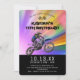 Convite de aniversário legal e colorido, com motocicleta em motocross, bandeiras de marca, fundo colorido e modelo de aniversário contemporâneo que pode ser facilmente personalizado.