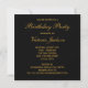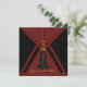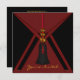 Convite de aniversário e festa com borlas douradas vermelhas e pretas.