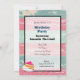 O fundo deste convite de festa de aniversário é uma textura de cerca de madeira rústica, áspera e desgastada em listras rosa e verde grunge. Escreva os detalhes da sua festa em uma caixa com borda preta semi-transparente. O convite também tem um gráfico fofo de uma fatia de bolo na parte inferior.