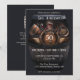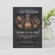Um convite de degustação de vinhos com design moderno apresentando um barril de vinho com copos e garrafas. No verso há um modelo de código QR que você pode personalizar facilmente para direcionar para o URL do seu próprio site. Se você não precisar, você pode excluir o código QR e o texto no verso e personalizar as informações de RSVP na frente. Você também pode usar este convite para uma escapada de fim de semana e adicionar um itinerário ao seu site. Bonito para um aniversário ou aposentadoria ou outra ocasião festiva.
