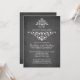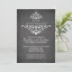 Convite de aniversário de quadro-negro lindo com um floreio de folhas de damasco branco vintage chique sobre um fundo moderno de quadro-negro preto. Disponível em nossa loja em uma grande seleção de cores modernas e tendências. Pedidos personalizados são sempre bem-vindos! Fácil de personalizar com as informações da sua festa de aniversário e pode ser personalizado para aniversário de casamento de 25 anos, aniversário de casamento de 30 anos, aniversário de casamento de 35 anos, aniversário de casamento de 40 anos, aniversário de casamento de 45 anos, aniversário de casamento de 50 anos, aniversário de casamento de 55 anos, aniversário de casamento de 60 anos.
