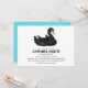 Convite de festa de aniversário apresenta flutuador de cisne negro na piscina. Convite minimalista que vai direto ao ponto!