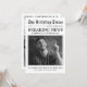 Convite de aniversário estilo jornal antigo com notícias sobre a festa, fotos ao longo dos anos e um modelo de texto fácil de personalizar.