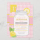 Convide seus convidados a comemorar seu pequeno seu aniversário seguinte com um vidro alto frio da limonada cor-de-rosa! Este convite caracteriza um frasco de pedreiro com enfeites do limão, texto lunático e contexto do guingão. Aperfeiçoe para a celebração do aniversário do seu bebê do verão. Personalize o texto para fazer-lhe seu!