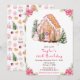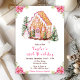 Este convite de aniversário elegante e festivo apresenta uma casa de pão de gengibre de aquarela e lindas flores de poinsettia rosa. O texto combina o script manuscrito e as fontes sans serif para uma aparência na moda e moderna. O boneco de neve, pinheiro decorado e coroa de férias adicionam um toque festivo. Isto é perfeito para festas de aniversário de Natal.