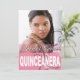 Use a PERSONALIZAÇÃO ELE botão para adicionar seus texto & fotografia a este convite bonito de Quinceañera que caracteriza swirly curliques em um fundo cor-de-rosa, com um entalhe para sua foto favorita. Para perguntas ou pedidos do special, contacte: cheryl@cheryldanielsart.com. Design pelo © 2011 de Cheryl Daniels.
