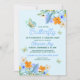 Convites de festas de aniversários temáticos de flores silvestres doces e de verão. Apresentando lindas flores azuis, brancas, cor de laranja e amarela e borboletas coloridas pastel sobre uma bela cor azul de fundo do céu.