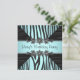 Convite de festa de aniversário da mulher zebra azul turquesa preta para qualquer número. Peças coordenadas disponíveis mediante solicitação por e-mail.