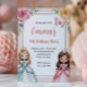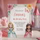 Faça com que o aniversário da sua menina se sinta como um conto de fadas com este adorável convite de aniversário da princesa! Apresentando um castelo aquarela, um design floral e uma ilustração de uma doce princesa, este convite mágico é perfeito para qualquer celebração real. Personalize facilmente o nome, a idade, a data da festa e os detalhes do seu filho. Uma escolha encantadora para a princesa, conto de fadas ou aniversários sobre temas reais.