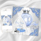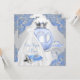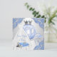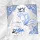 Convite de aniversário da Cinderela com lindo vestido, sapatos de salto alto e tiara com carruagem de princesa em um fundo giratório azul claro e prata. Este convite de aniversário de princesa Cinderela para meninas de qualquer idade é facilmente personalizado para o seu evento, basta adicionar seus detalhes no estilo de letra e cor, e na redação de sua escolha. Você pode mover os sapatos e o travesseiro ou excluí-los se preferir. Este é um design impresso sem brilho real, diamantes, renda, etc.