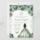 Este elegante e glamouroso convite de aniversário apresenta uma bela princesa com cabelo castanho e pele escura num vestido verde-sábio. O texto combina o script manuscrito e as fontes sans serif modernas para um aspecto elegante e sofisticado. Os arranjos florais, borboleta e confete criam a mistura perfeita de rústico e chic. Gráficos por www.etsy.com/uk/shop/SunflowerDayLove