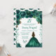 Este elegante e glamouroso convite de aniversário apresenta uma bela princesa com cabelo castanho e pele clara num vestido esmeraldo verde. O texto combina o script manuscrito e as fontes sans serif modernas para um aspecto elegante e sofisticado. Os arranjos florais, borboleta e confete criam a mistura perfeita de rústico e chic. Gráficos por www.etsy.com/uk/shop/SunflowerDayLove